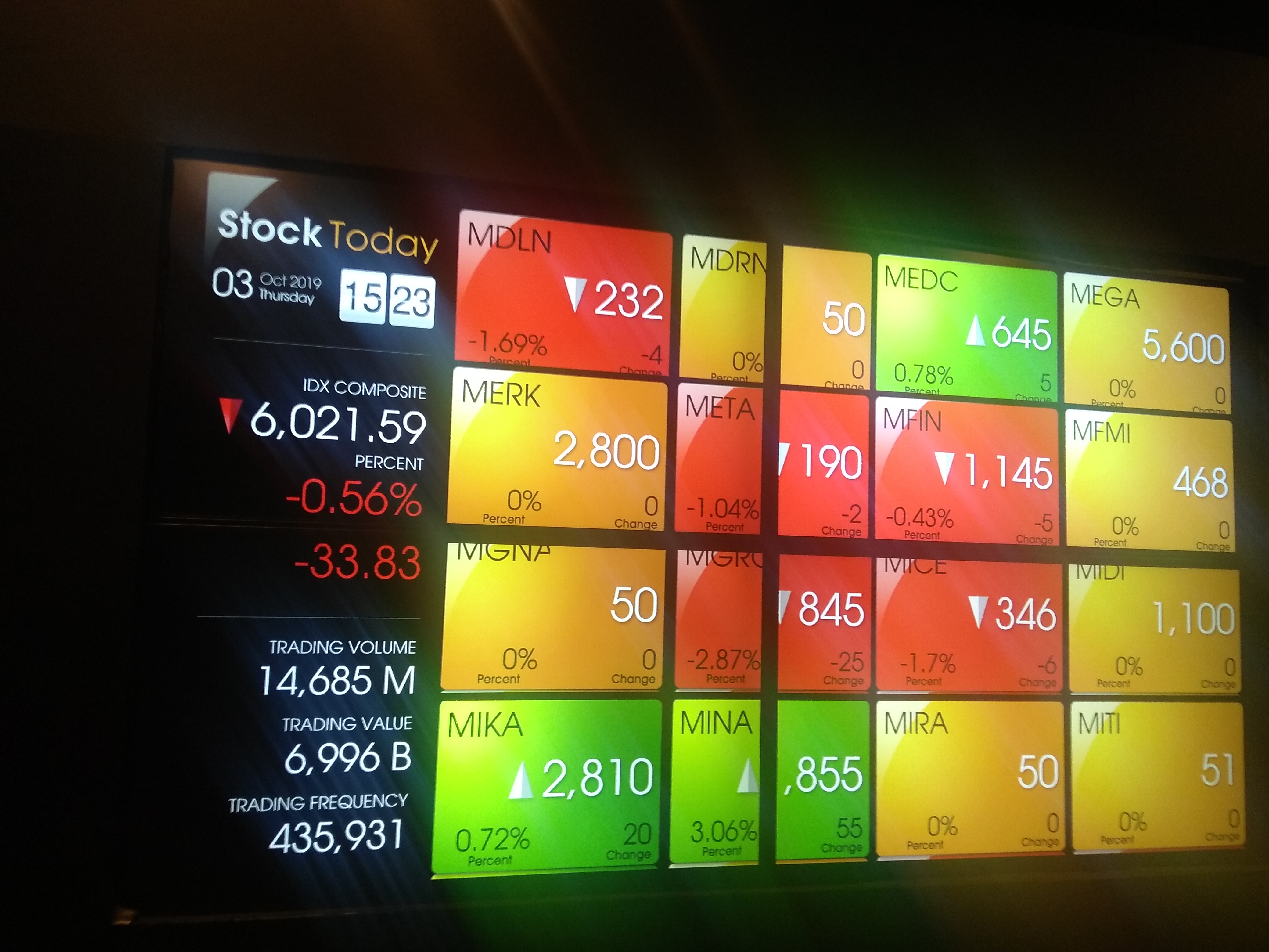 Tercatat sebanyak 173 saham menguat, 222 saham melemah, dan sisanya stagnan. Adapun transaksi perdagangan mencapai Rp6,766 triliun dari 11,1 miliar saham yang diperdagangkan.