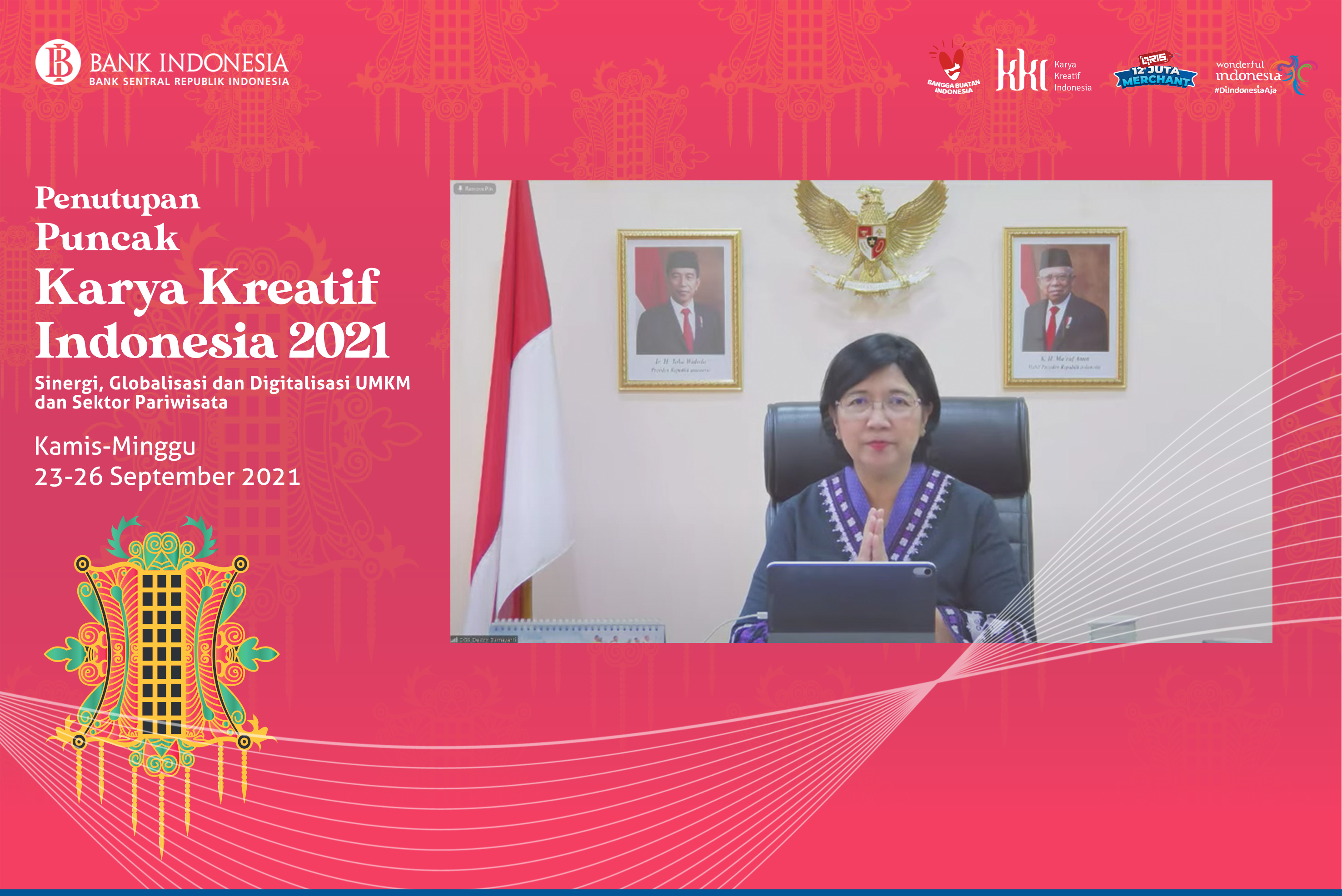 Gubernur Bank Indonesia menyampaikan pula apresiasi atas usaha dan sinergi berbagai pihak dalam mengembangkan UMKM serta kerajinan Indonesia selama ini.