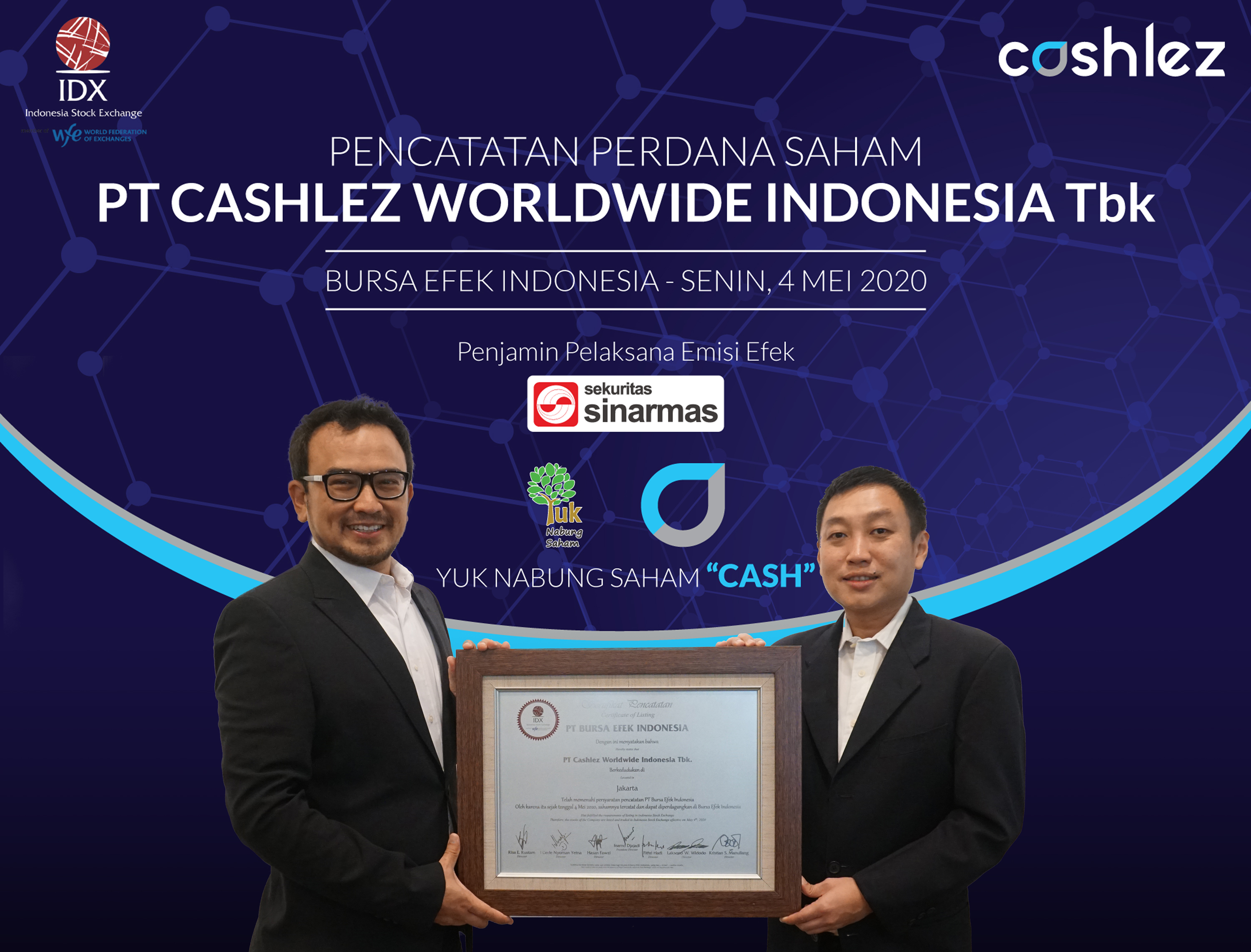 Pasardana.id - PT Cashlez Worldwide Indonesia Tbk (IDX: CASH) dan Lumbung Dana telah menandatangani kesepakatan kerja sama yang dilakukan oleh Presiden Direktur Cashlez, Suwandi dan Co-Founder/CEO Lumbung Dana, Yoga Mahesa P. Kurniarto di kantor Cashlez, Jakarta.