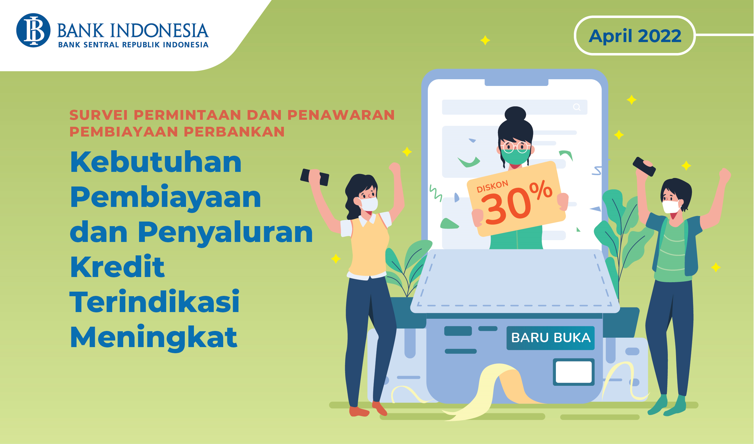 Sedangkan dari sisi penawaran perbankan, penyaluran kredit baru pada Maret 2021 terindikasi lebih tinggi dibandingkan dengan Februari 2021.