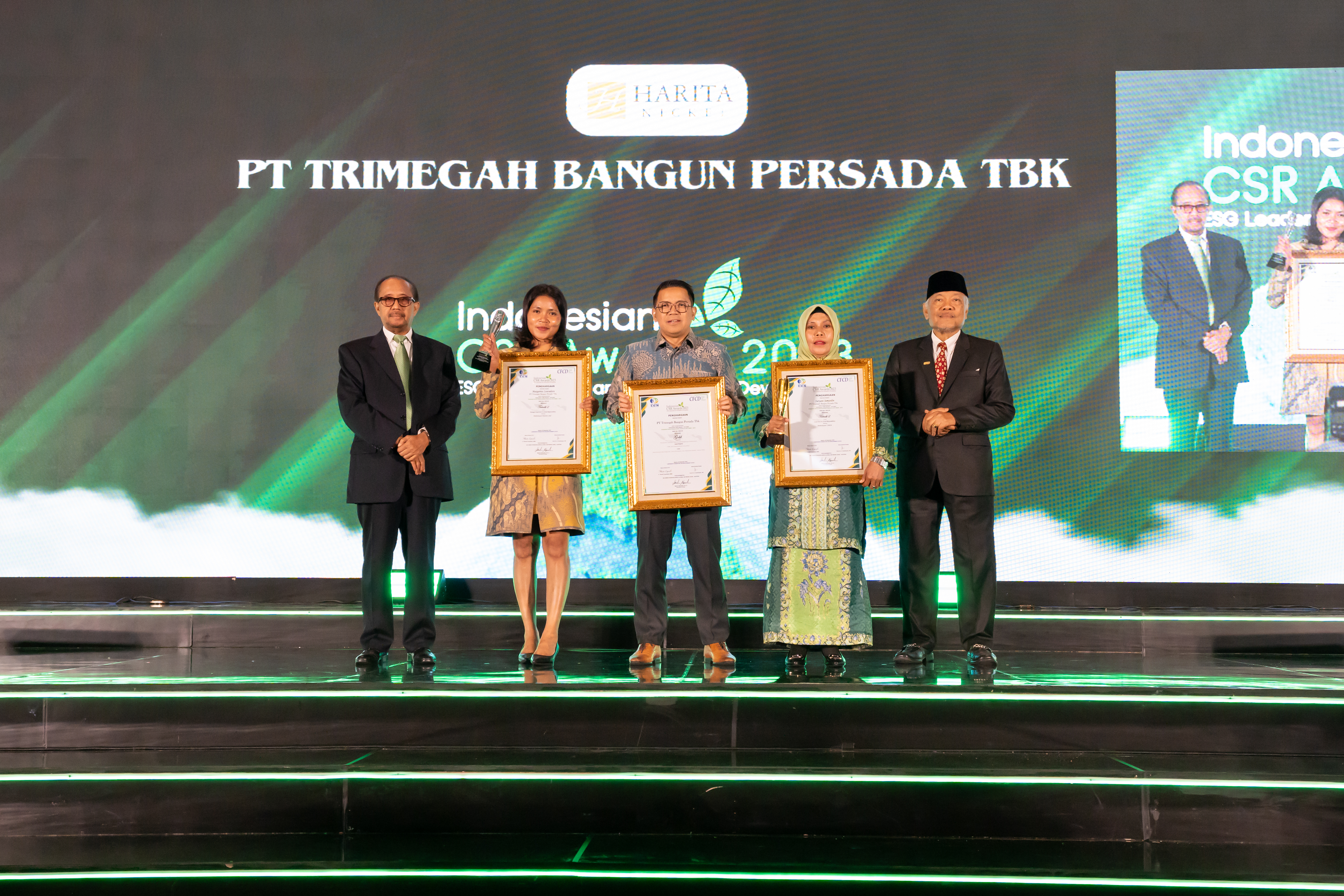 Tercatat PT Halmahera Persada Lygend (anak perusahaan yang dimiliki langsung sebesar 45% oleh PT Trimegah Bangun Persada Tbk) memegang 21.026 saham (kepemilikan 94,24%), sementara Hong Kong Blue Whale International Limited memegang 1.285 saham (kepemilikan 5,76%).