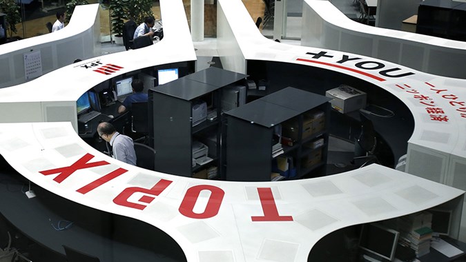 Indeks Nikkei 225 di Bursa Efek Tokyo, Jepang, terjun...