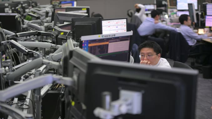 Indeks Kospi di Bursa Efek Korea, Seoul, Korea Selatan,...