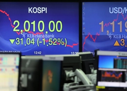 Indeks Kospi di Bursa Efek Korea, Seoul, Korea Selatan,...