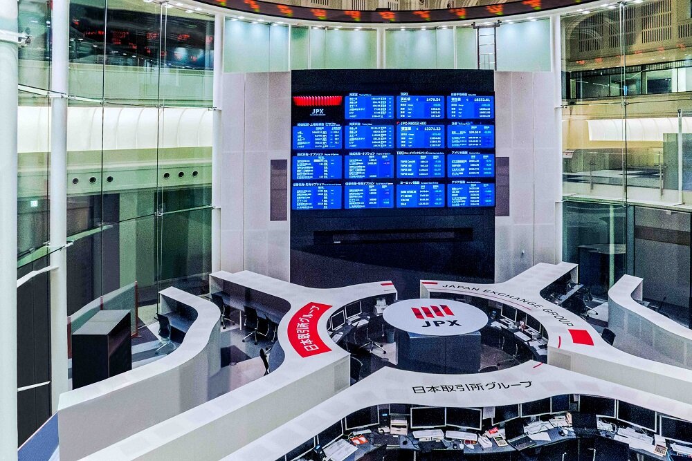 Indeks Nikkei 225 di Bursa Efek Tokyo, Jepang, turun...