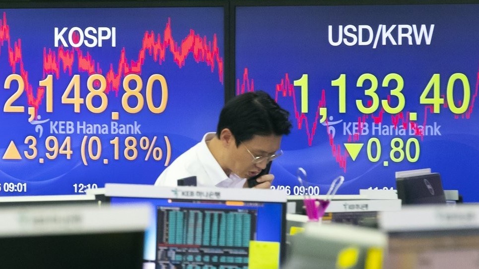 Indeks Kospi di Bursa Efek Korea, Seoul, Korea Selatan,...