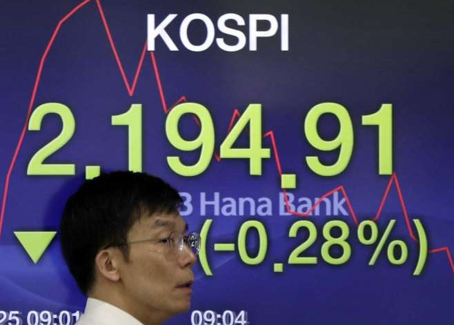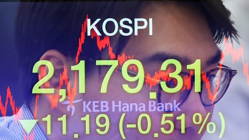 Indeks Kospi di Bursa Efek Korea, Seoul, Korea Selatan,...