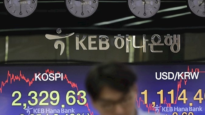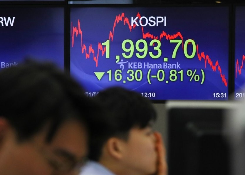 Indeks Kospi di Bursa Efek Korea, Seoul, Korea Selatan,...