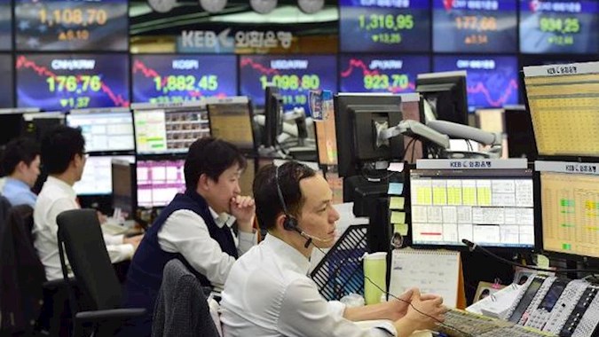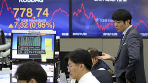 Indeks Kospi di Bursa Efek Korea, Seoul, Korea Selatan,...