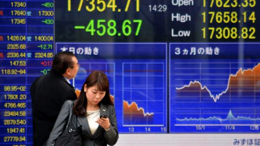 Indeks Nikkei 225 di Bursa Efek Tokyo, Jepang, merosot...