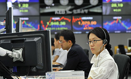 Indeks Kospi di Bursa Efek Korea, Seoul, Korea Selatan,...
